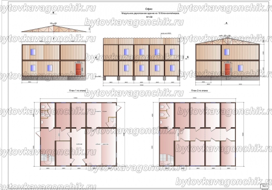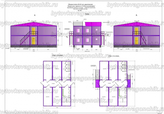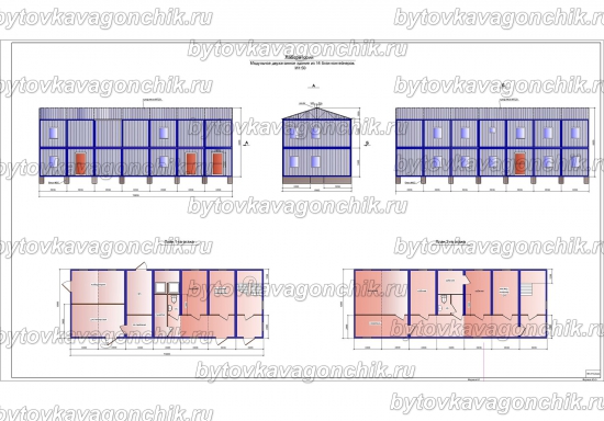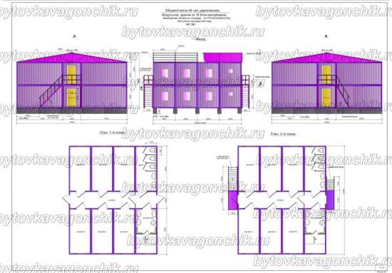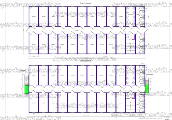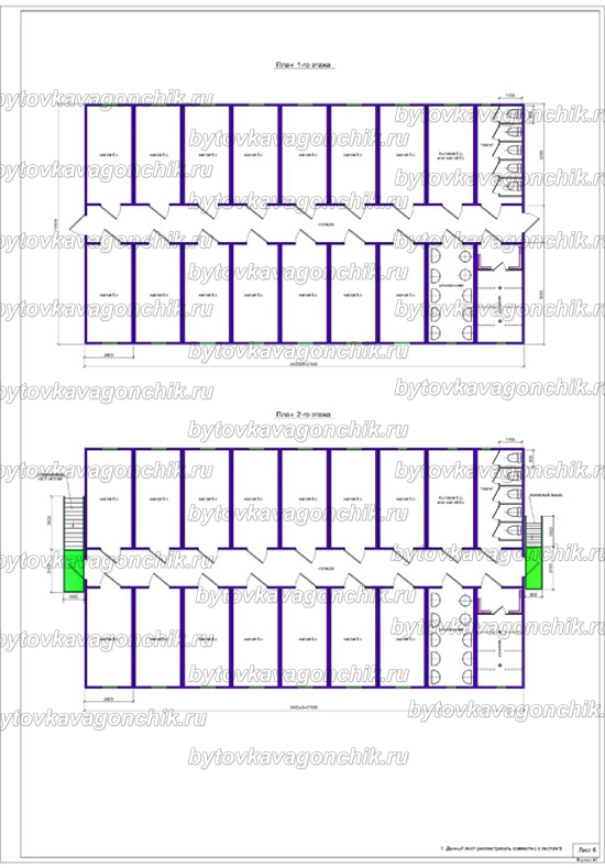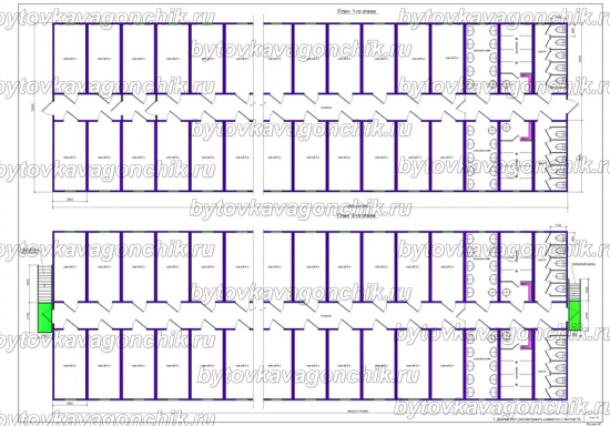 Планы двухэтажного общежития на 100 человек из 36 шт БК