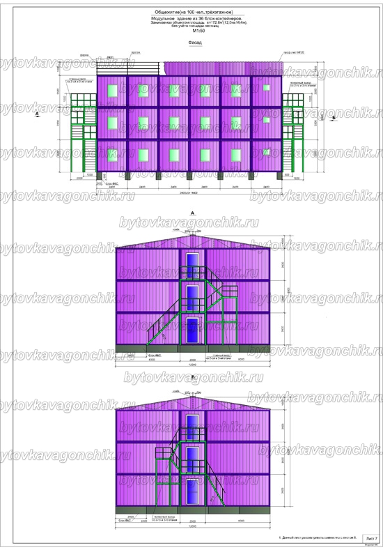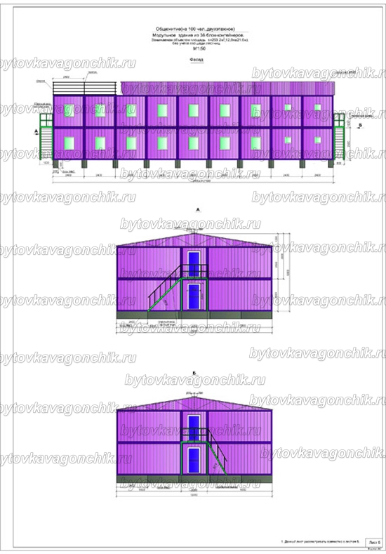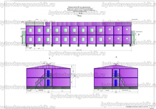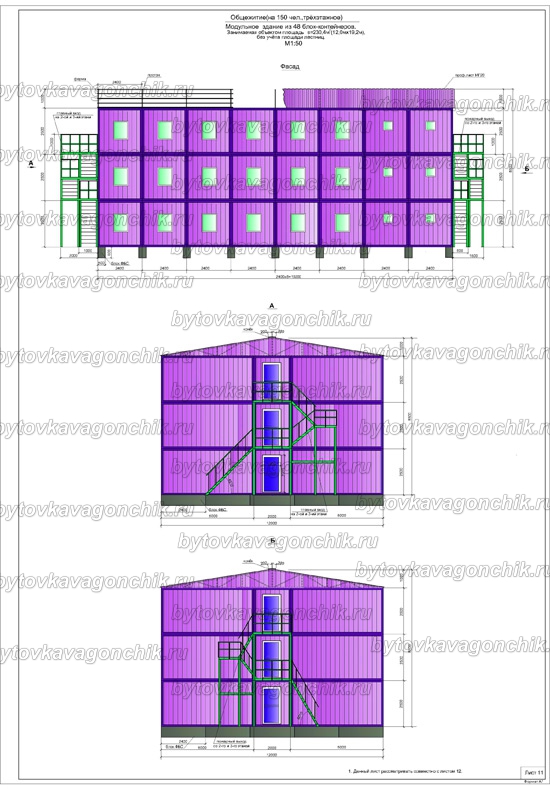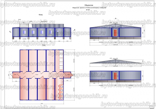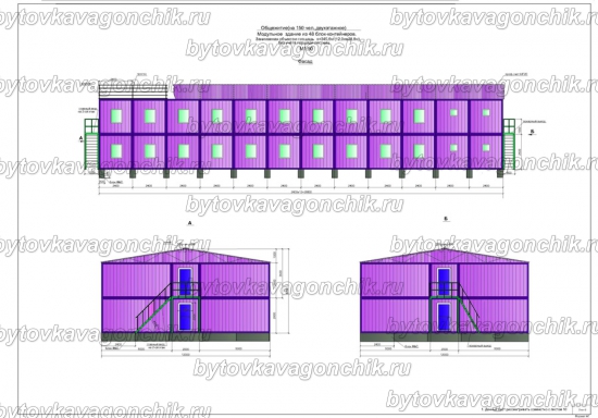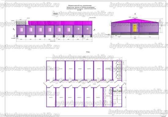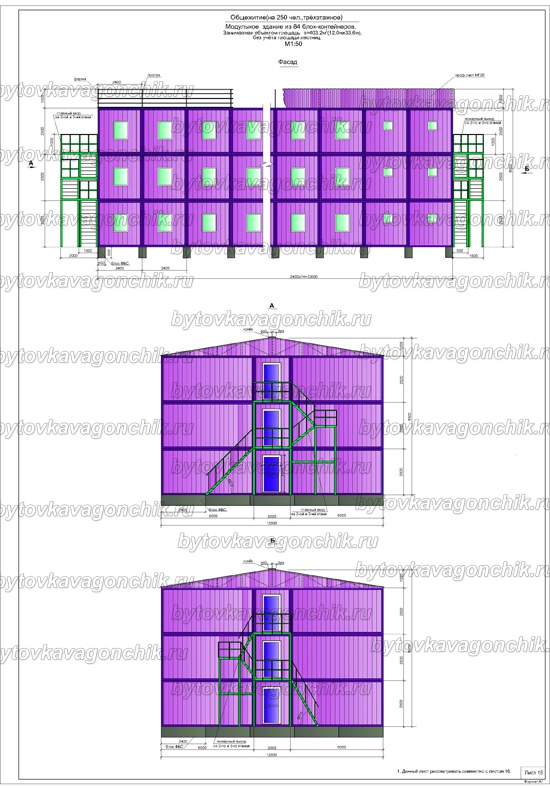 Фасады, план общежития на 50 человек, из 16 шт БК