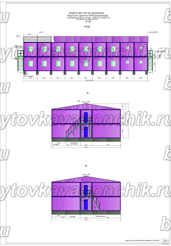 Фасады двухэтажного общежития на 100 человек из 36 шт БК